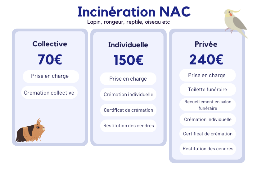 Les crémations NAC sont moins chères puisque les animaux sont de petits gabarits et demandent moins d'énergie pour alimenter les chambres de combustion.