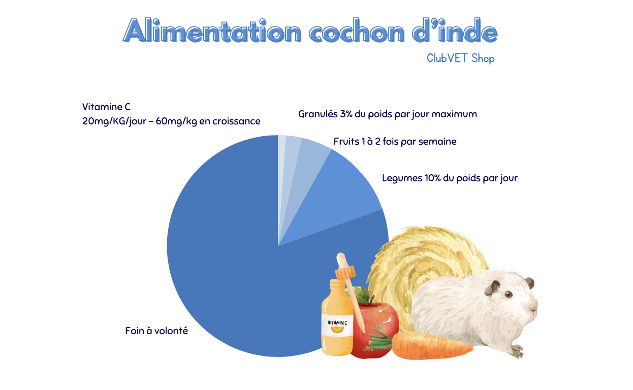 Cependant, même une alimentation variée reste souvent insuffisante pour couvrir les besoins quotidiens du cobaye.Il est donc nécessaire de proposer à votre cochon d'inde un complément quotidien en vitamine C.