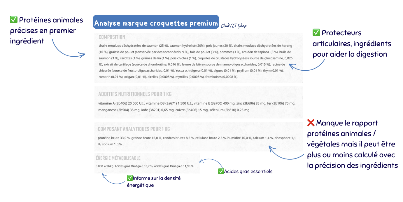 • Faible personnalisation selon les pathologies, l’âge ou la race. Les formules sont souvent très similaires même si le marketing vend un produit pour un âge spécifique.